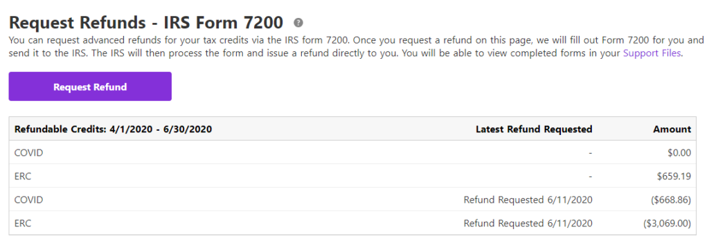 - Choose to request a tax credit refund directly from the IRS using Form 7200. See the help articleHow Do I Get a Tax Credit Refund from the IRS in Patriot?