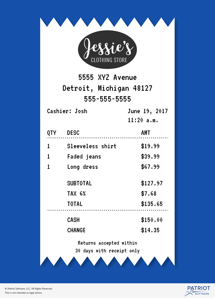 Customer receipt example