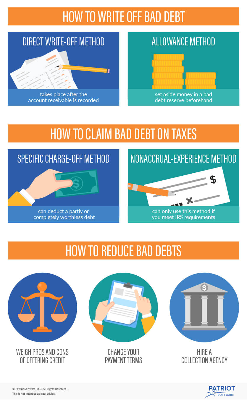 如果坏账包含在你的总收入中,你可以使用特定的冲销方法或非应计经验方法向IRS索赔。这减少了您的纳税义务.在大多数情况下,你需要使用特定的冲销方法。